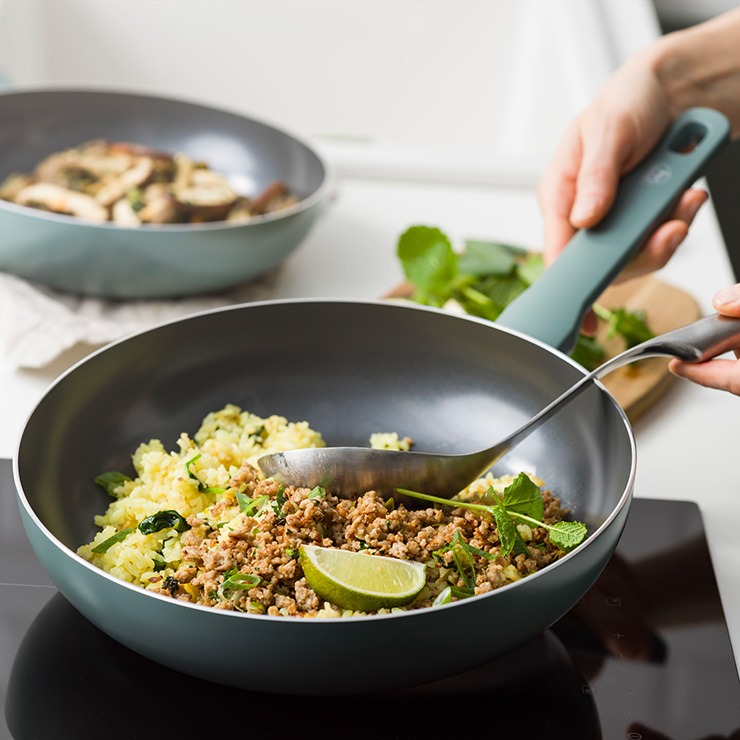 良質な食材を選ぶように、カラダにやさしい調理器具を選ぼう。PFAS FREEのグリーンシェフに、トーンズコレクションが仲間入り。樹脂ハンドルのため軽量で使いやすく、柔らかな色合いで落ち着いたデザインが特長です。コーティングには鉛やカドミウム、PFASを使用しない、セラミックコーティングを採用。こびりつきにくく、安心安全な素材を使用しています。