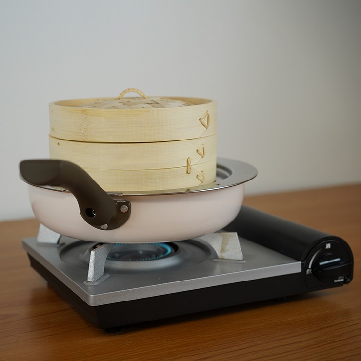 おうちにあるフライパン(24cm~26cm)で蒸し料理が楽しめます。