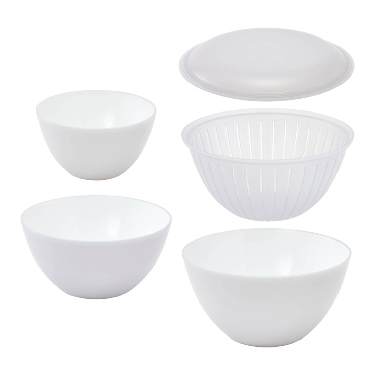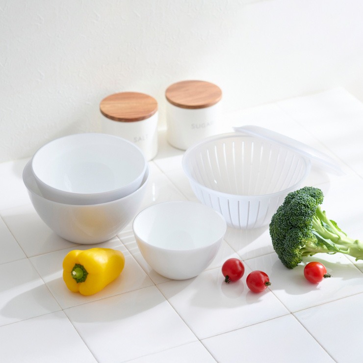 これ一つで使い分けて調理可能!調理・下ごしらえに便利な抗菌耐熱レンジざるボウルセット。まとめてコンパクトに収納可能。