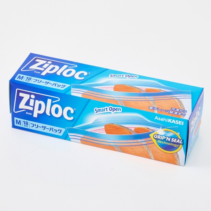 〈ジップロック フリーザーバッグ M 18枚〉:18.9×17.7cm