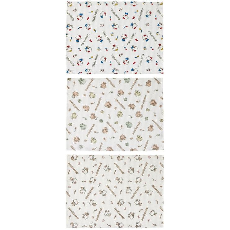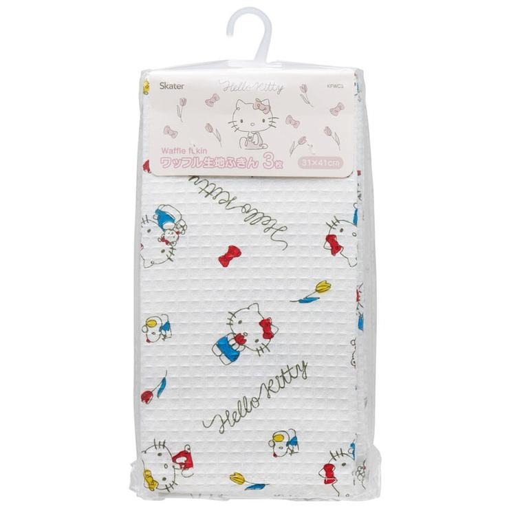 ワッフル生地ふきん3枚セット(ハローキティラインデザイン)