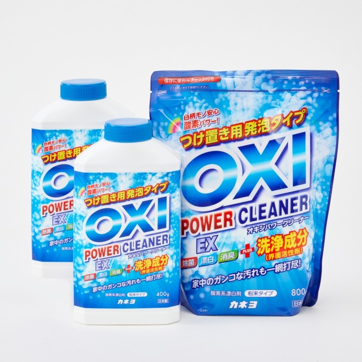 家中のガンコな汚れを一網打尽。OXIに漬けるだけで楽々お掃除ができます。瞬間発泡パワーの酸素の力で汚れを落とし、除菌・漂白までできます。アルカリ剤(炭酸ナトリウム)配合で、洗浄力パワーUP!キッチン・浴室・お洗濯に大活躍。色柄物にも安心して使えます。
