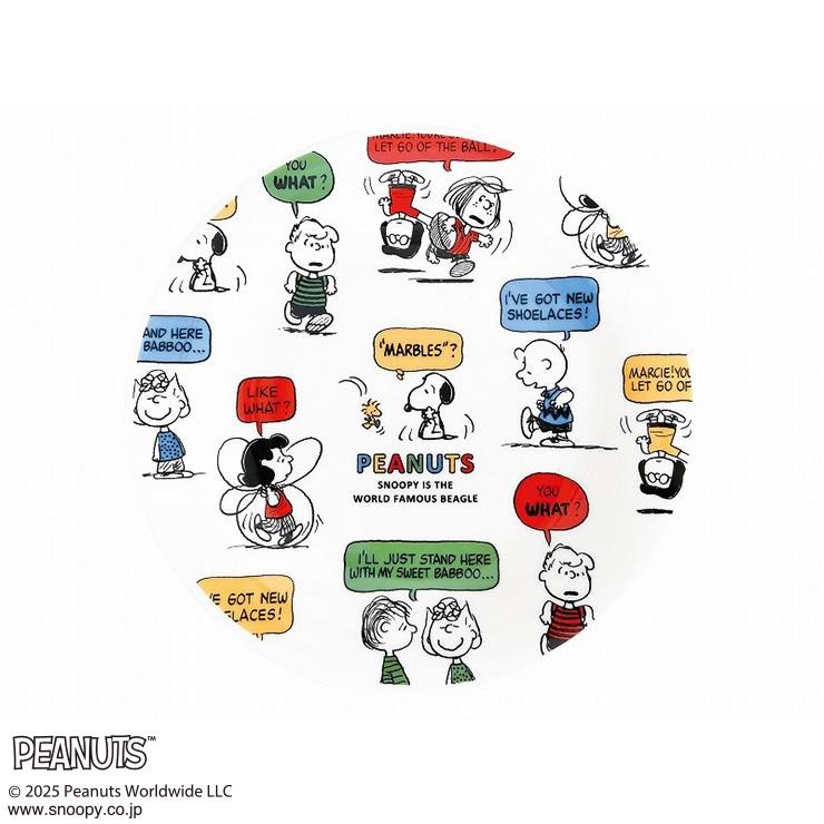 スヌーピーやピーナッツの仲間たちのレトロでポップなカラ―が素敵なプレートです。