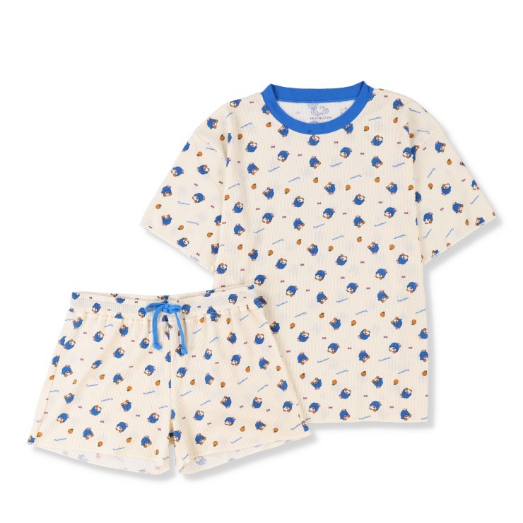 タキシードサムとフルーツ柄を組み合わせたオリジナルの総柄プリントが特徴。