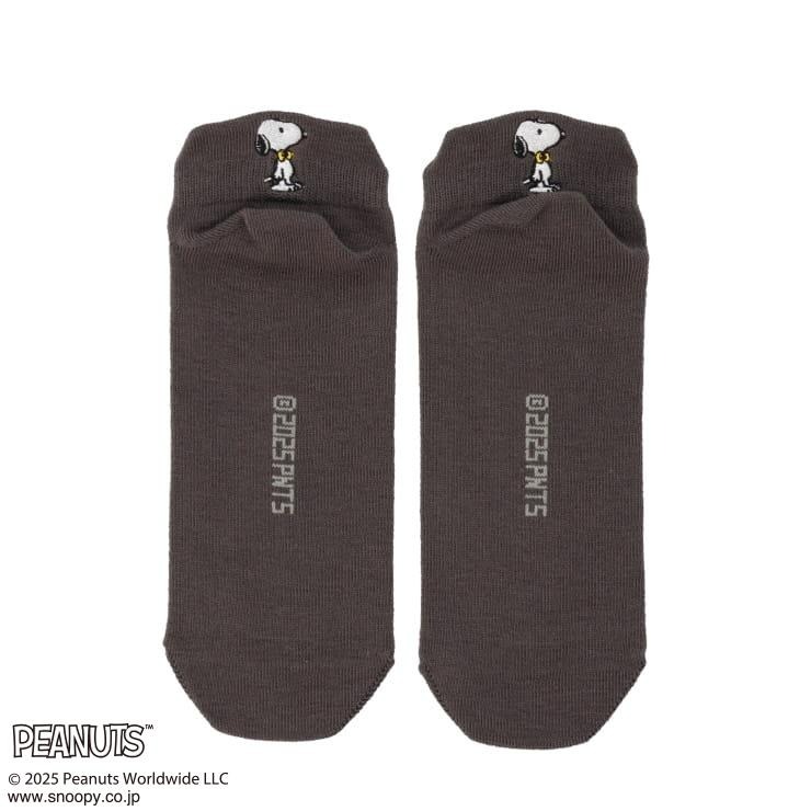カジュアルになりすぎないさりげないPEANUTSデザインがポイントのソックス。