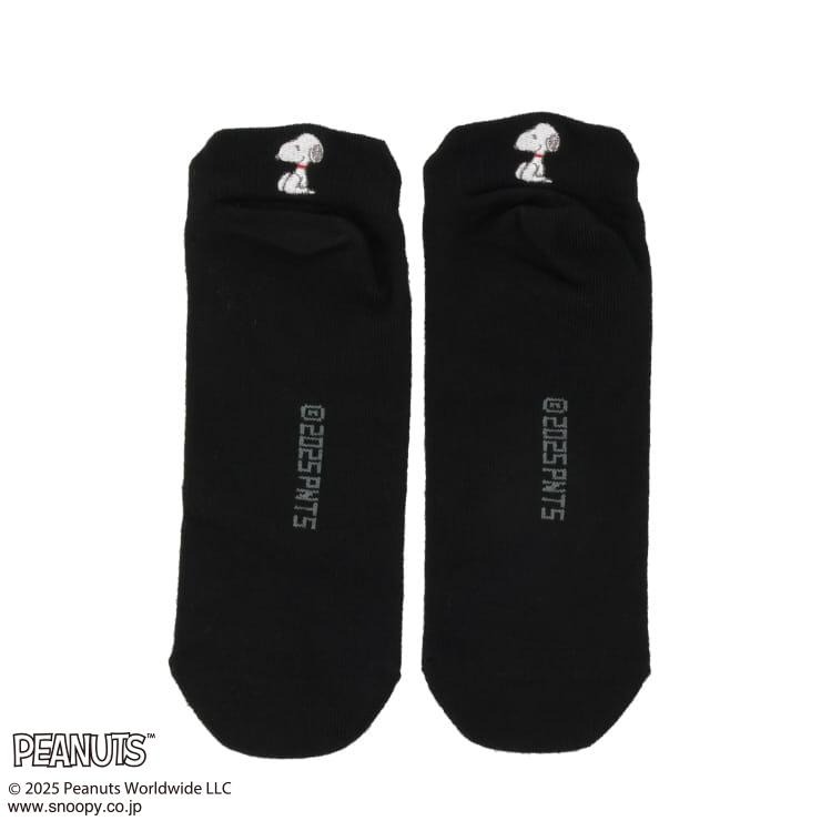 カジュアルになりすぎないさりげないPEANUTSデザインがポイントのソックス。