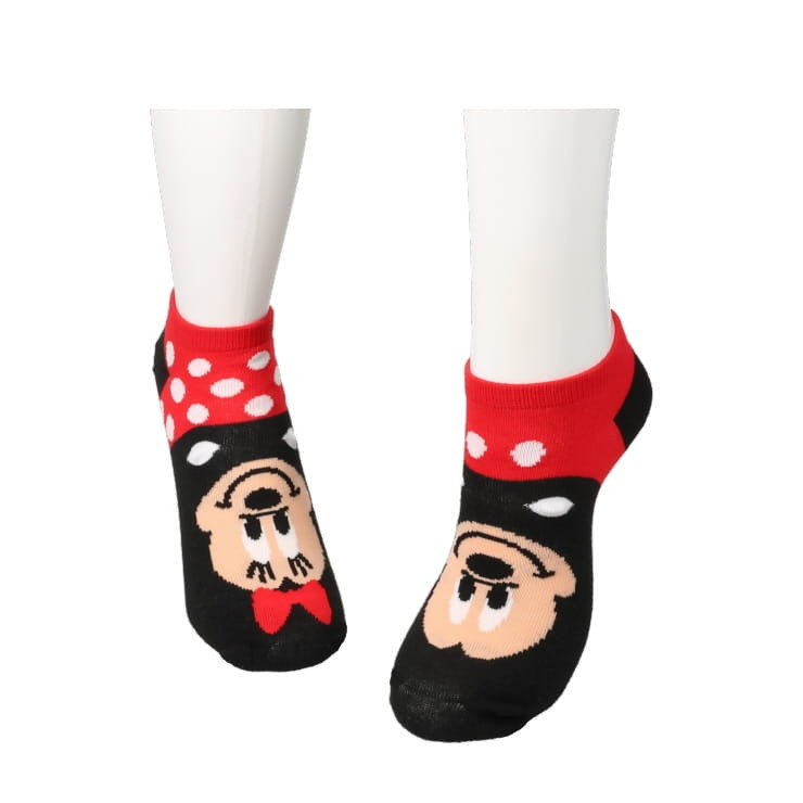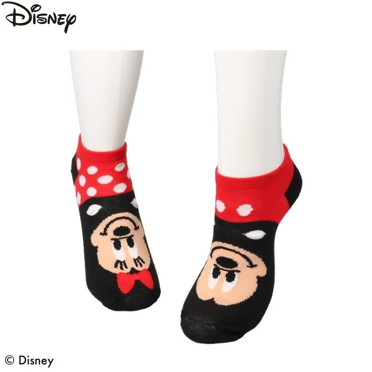 パペットタイプのスニーカー丈ソックス ミッキーとミニーの左右異柄になります