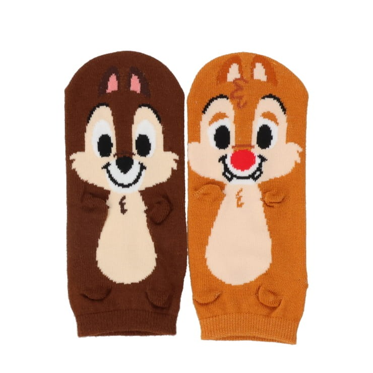 パペットタイプのスニーカー丈ソックス、チップとデイルの左右異柄になります