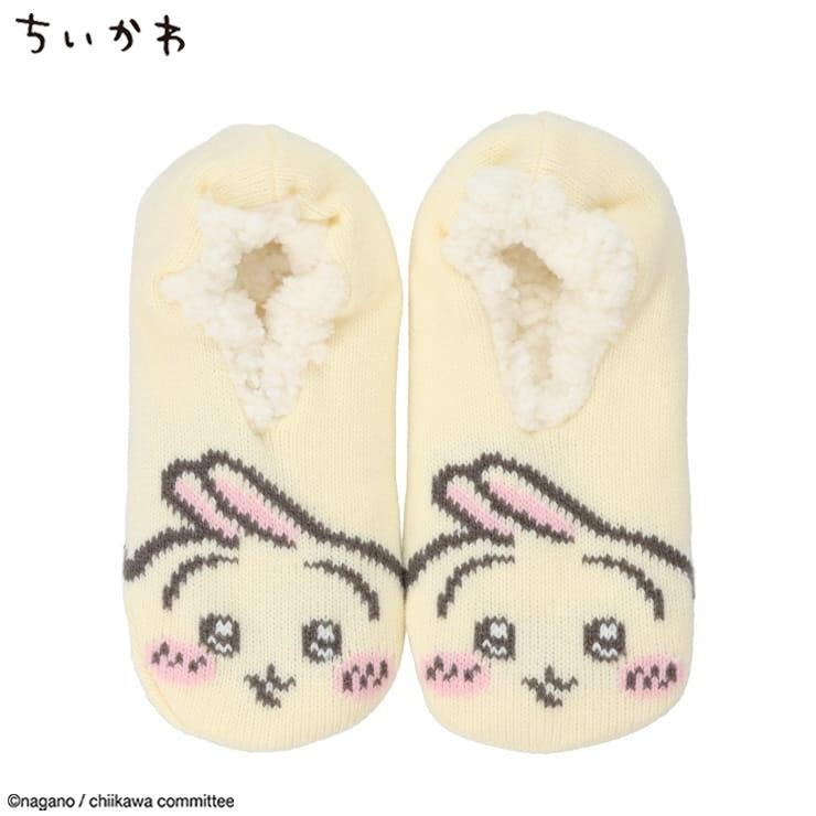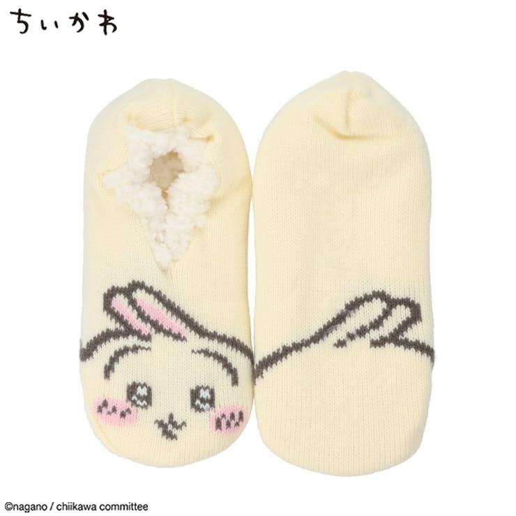 つま先にうさぎがデザインされた、温か生地のルームカバーです。