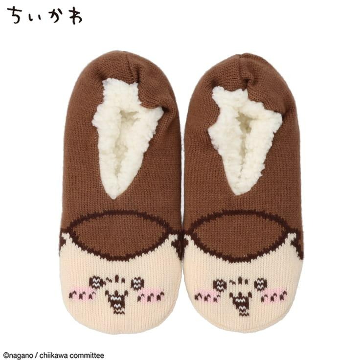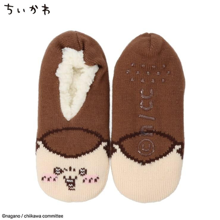 つま先にくりまんじゅうがデザインされた、温か生地のルームカバーです。