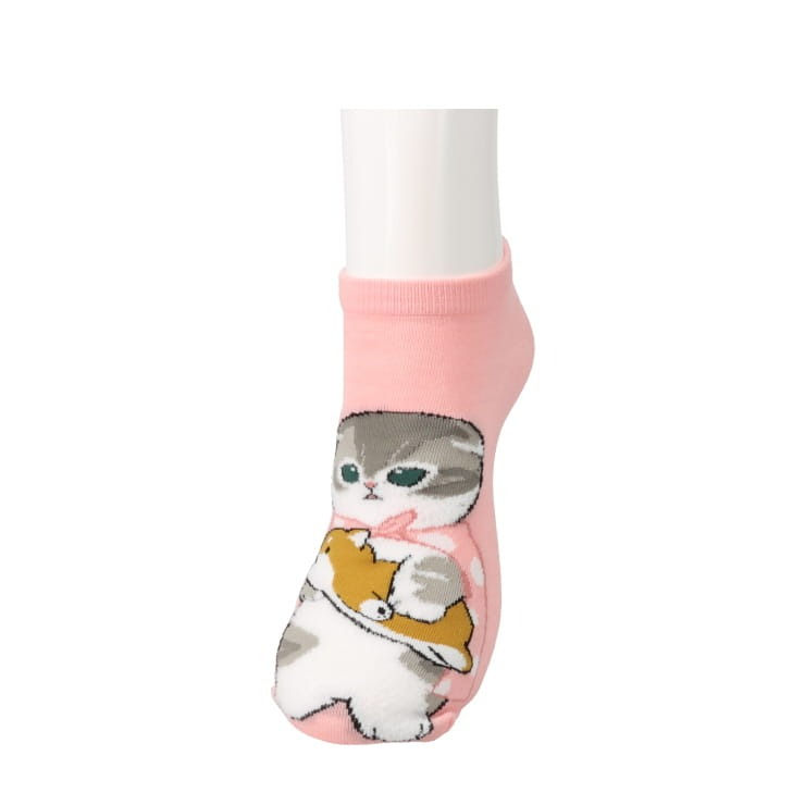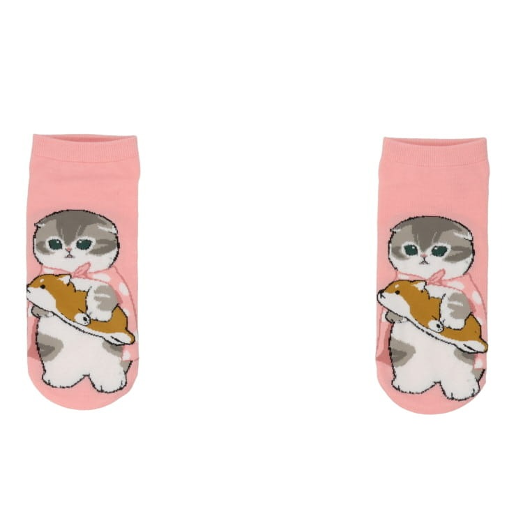 柴犬を抱っこした柄の「mofsand」デザイン靴下です。