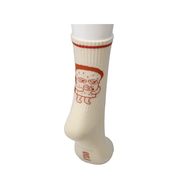 絵本から飛び出してきたような、愛らしいパンどろぼうが足元を彩ります。カジュアル感のあるリブがおしゃれなデザイン。プレゼントにも喜ばれる一足です。