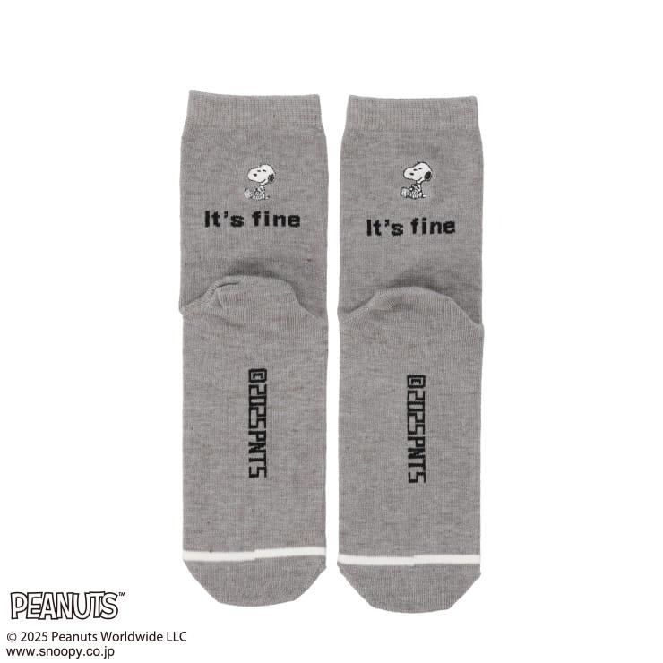 カジュアルになりすぎないさりげないPEANUTSデザインがポイントのソックス。