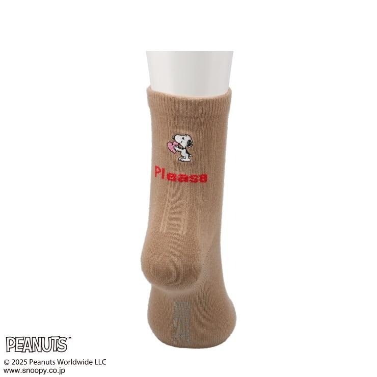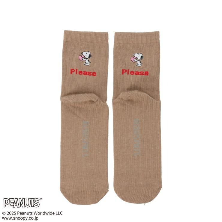 カジュアルになりすぎないさりげないPEANUTSデザインがポイントのソックス。