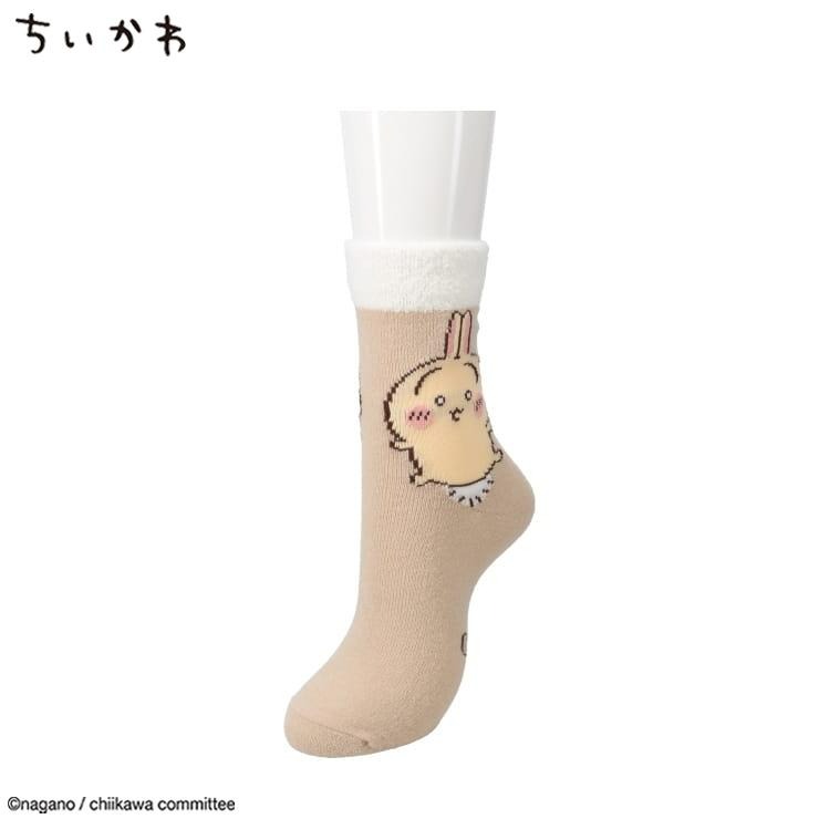 口ゴムモコモコ、うさぎがデザインされた靴下です。