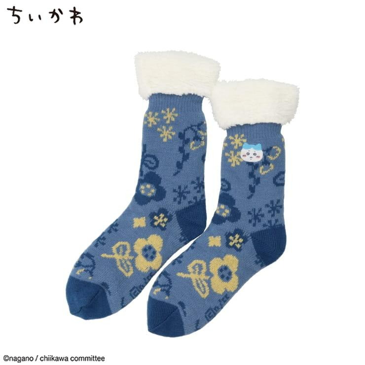 ハチワレがデザインされた裏ボアの靴下です。