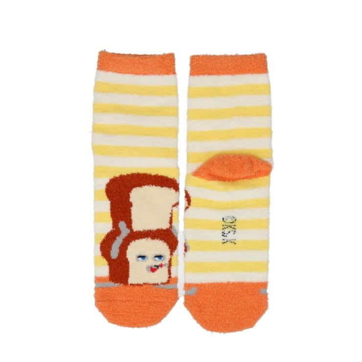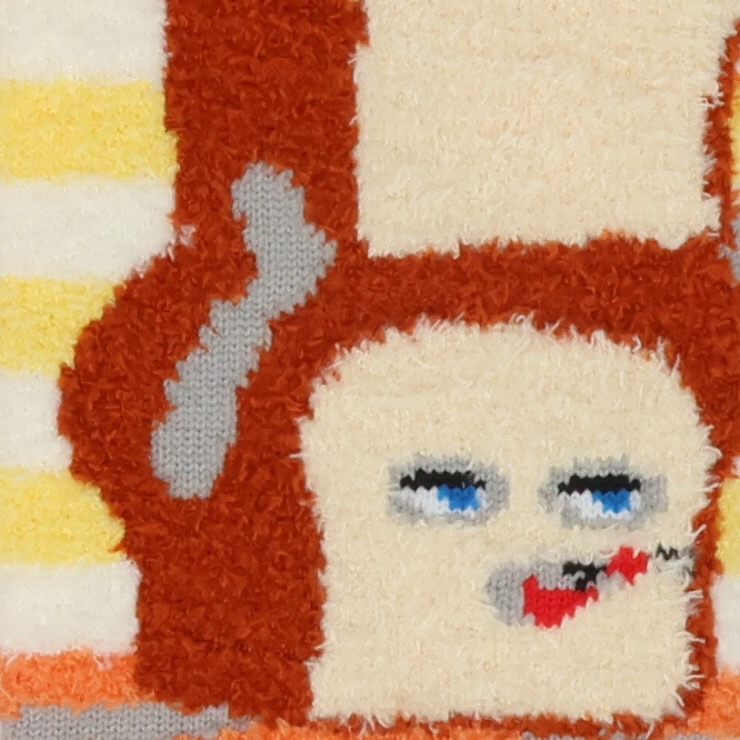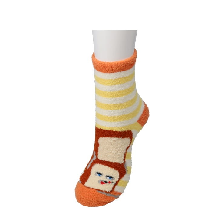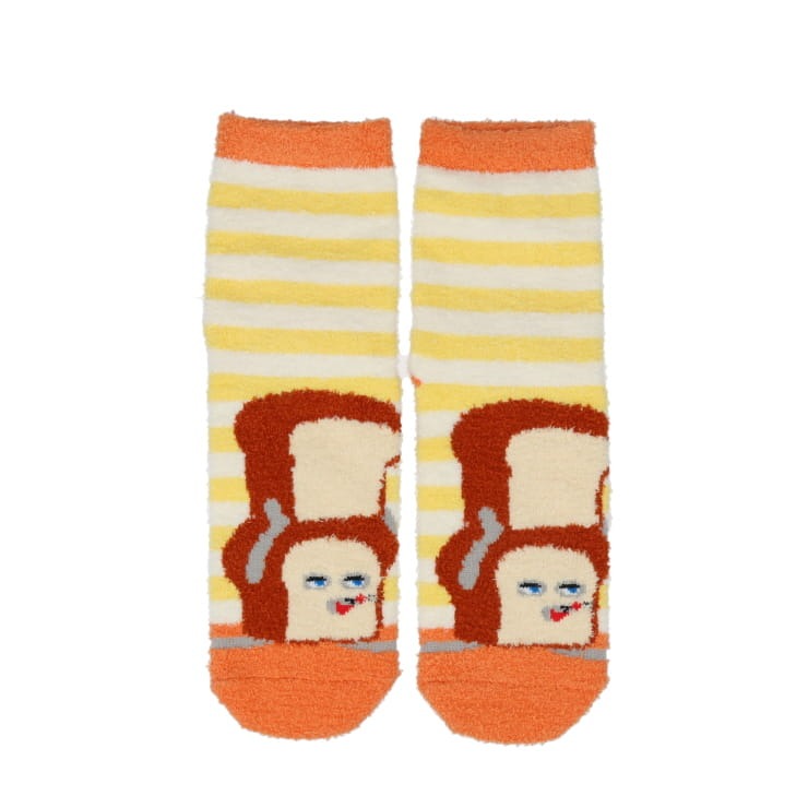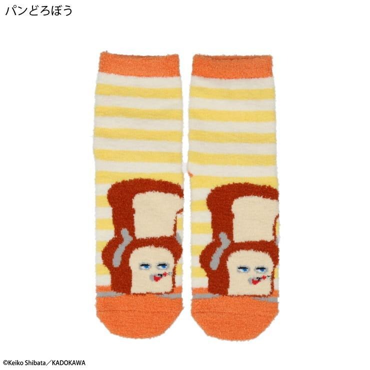 絵本から飛び出してきたような、愛らしいパンどろぼうが足元を彩ります。ふわふわのマシュマロ素材で冬でもあったか。プレゼントにも喜ばれる一足です。