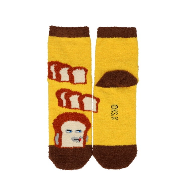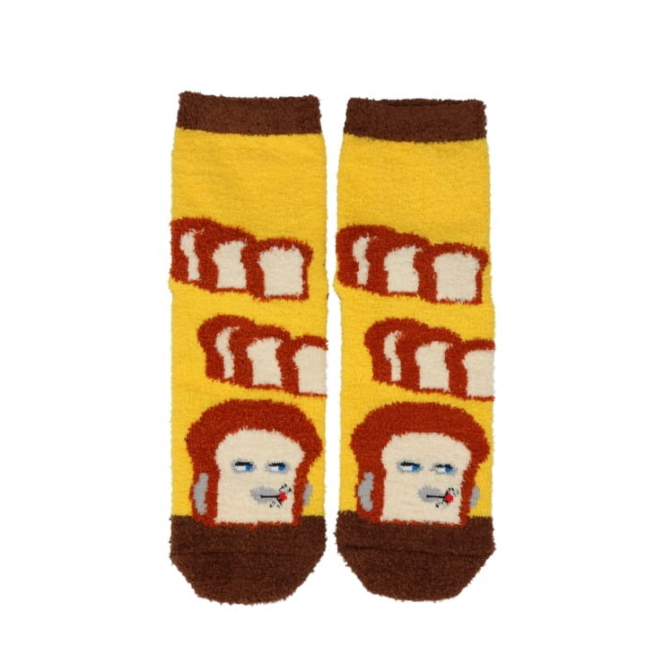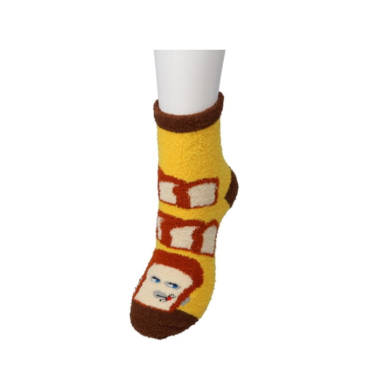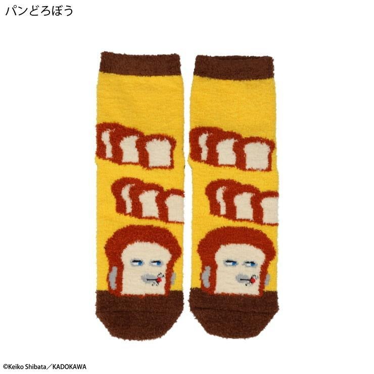 絵本から飛び出してきたような、愛らしいパンどろぼうが足元を彩ります。ふわふわのマシュマロ素材で冬でもあったか。プレゼントにも喜ばれる一足です。