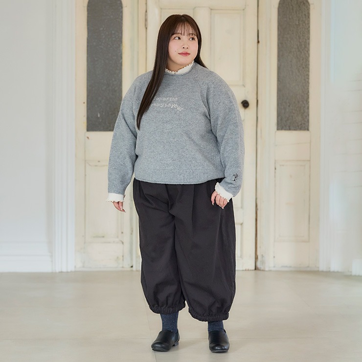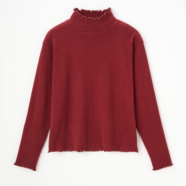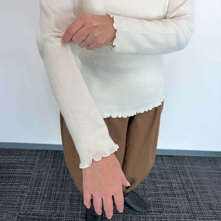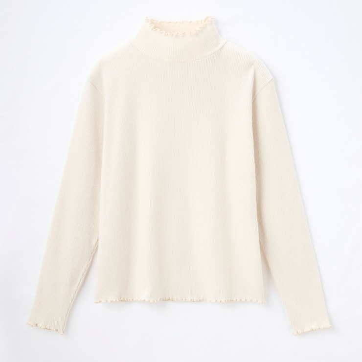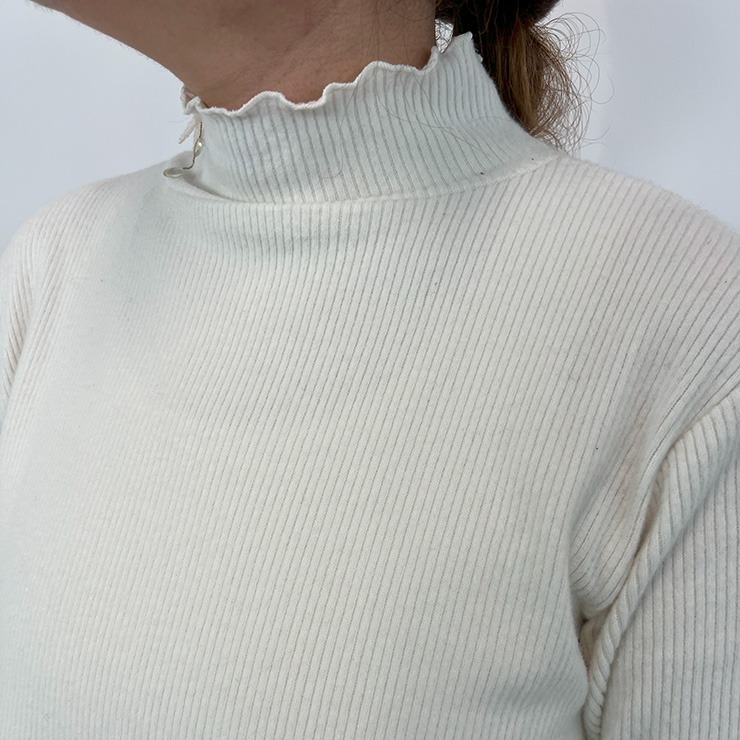 ネック、袖口、裾に施されたメローフリルが可愛い印象のプルオーバー。