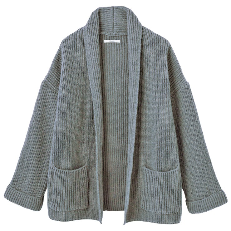 カーディガンはミドル丈で羽織るタイプのデザインです。おしりまで隠れるので暖かく、軽いアウターとしてお使いいただけます。
