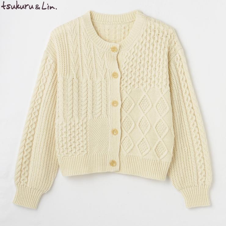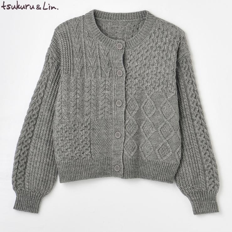 レディース パッチワークケーブルニットカーディガン(清水みさと×tsukuru&Lin.)