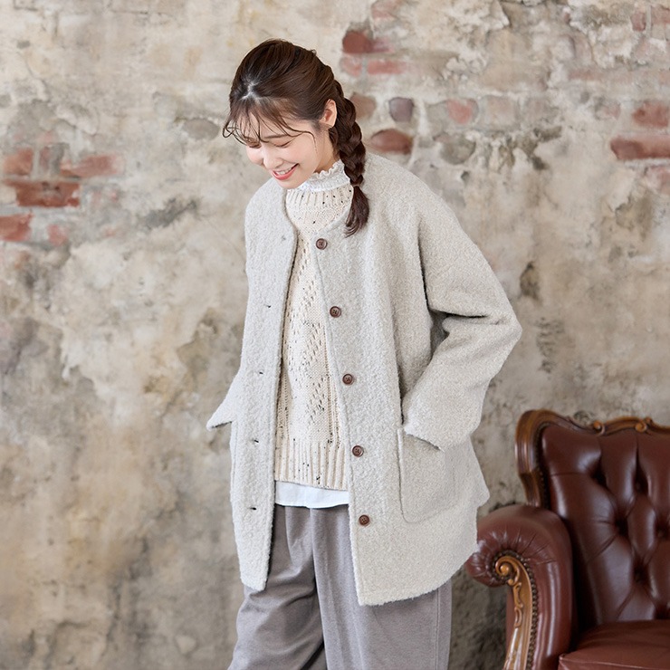 すっきりとした丈感なのでボトムスとのバランスも取りやすくカットソーやブラウスとも相性よく重ね着することができます。