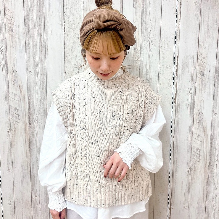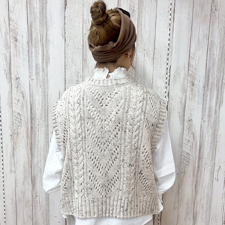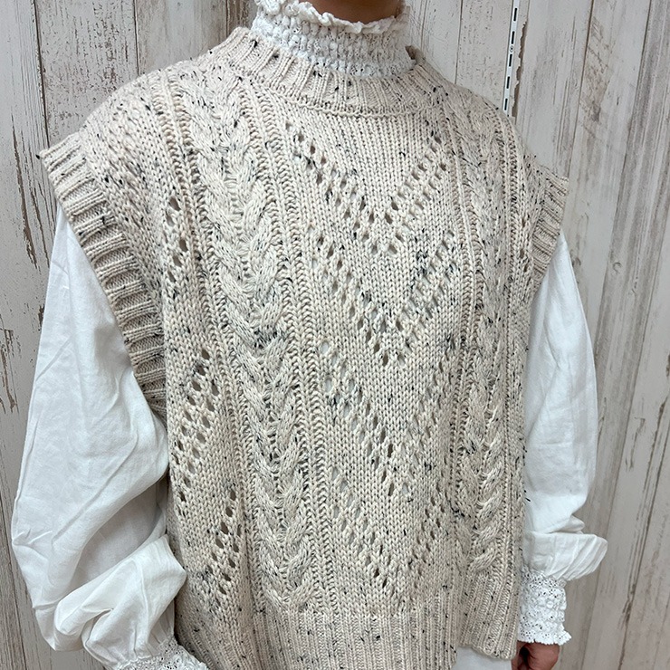 透かし編みがポイントのニットベスト。