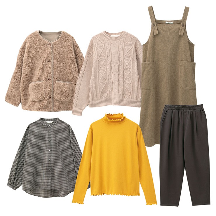 この6アイテムは落ち着いたカラーになっているため統一感のあるナチュラルなコーディネートにすることができます。