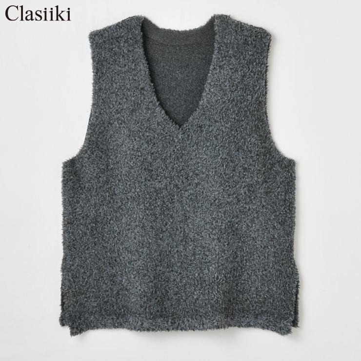 レイヤードしやすいフェザーヤーンVネックベストです。