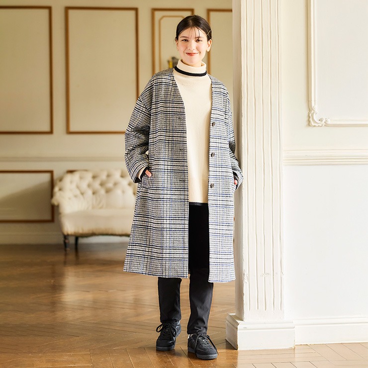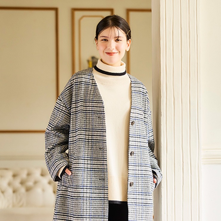 パネルボーダー柄がカジュアルすぎず上品な雰囲気で、オン・オフどちらにも合わせやすい1枚です。