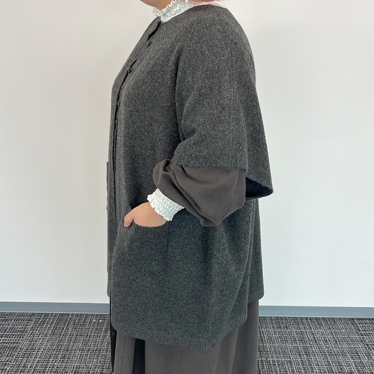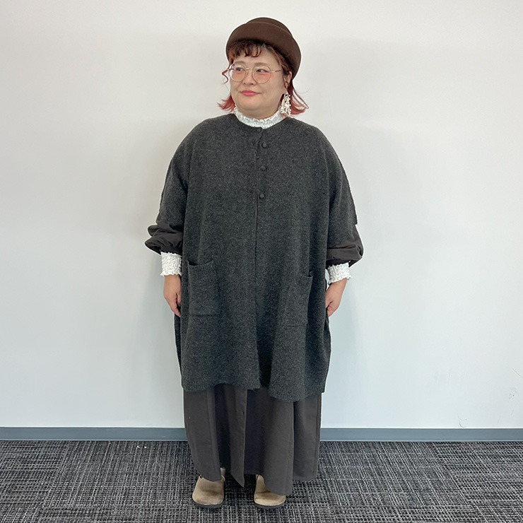 シンプルなアイテムとの相性良く、パンツにはもちろんワンピースの上に羽織るスタイルもおすすめです♪
