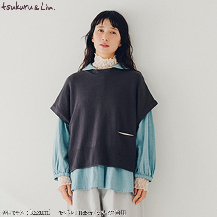 レディース ポケット付ニットベスト(tsukuru&Lin.)