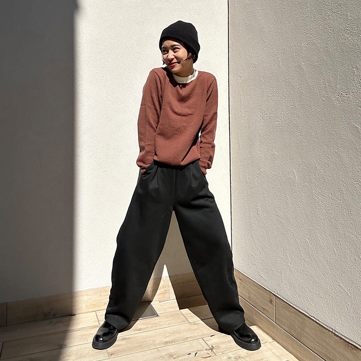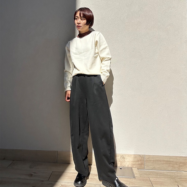 ベーシックなシルエットで、アウターを着てもかさばらないです。
