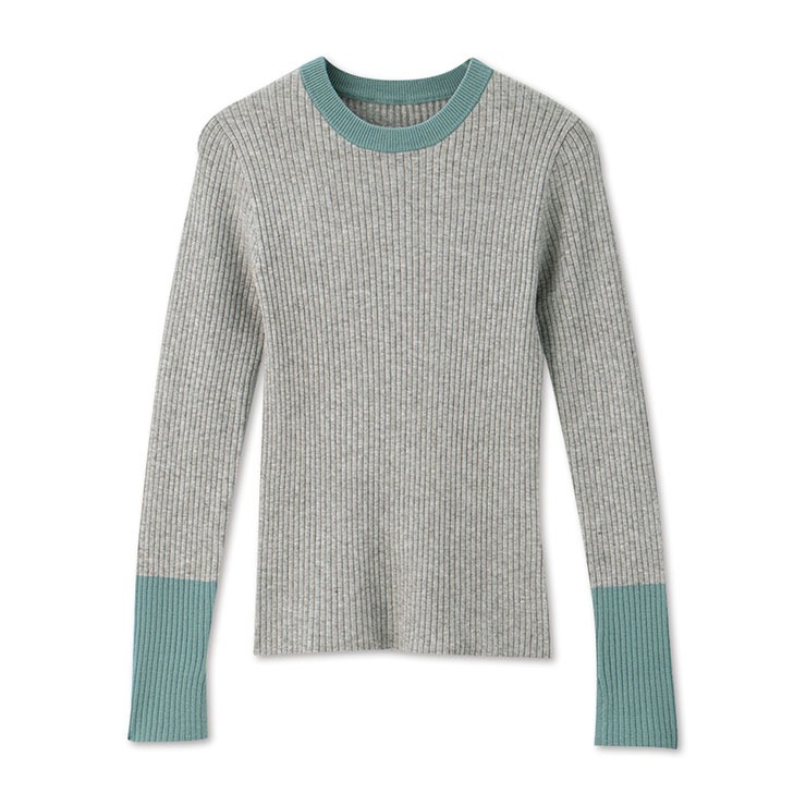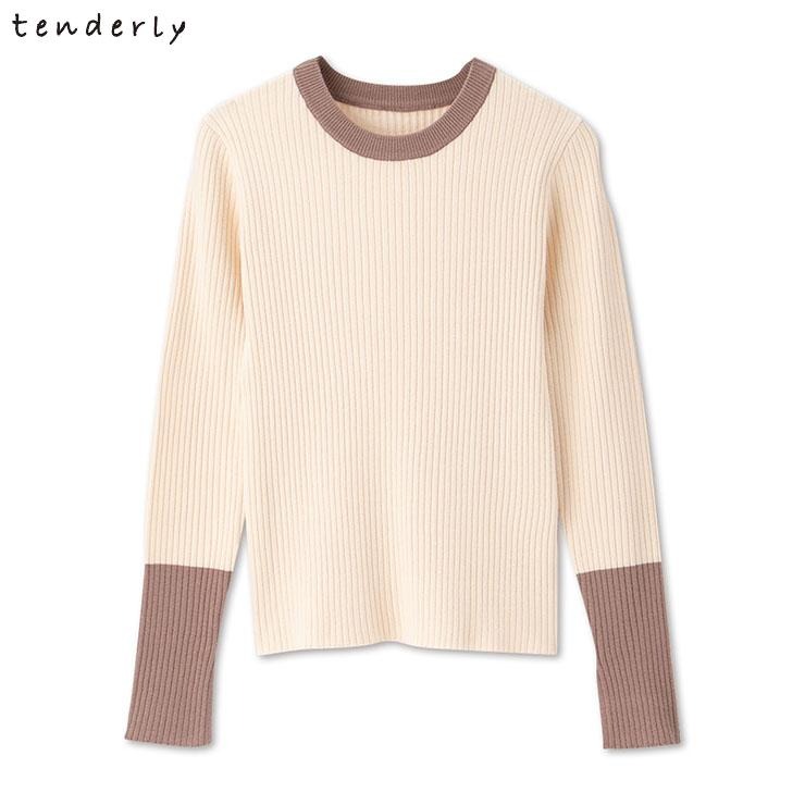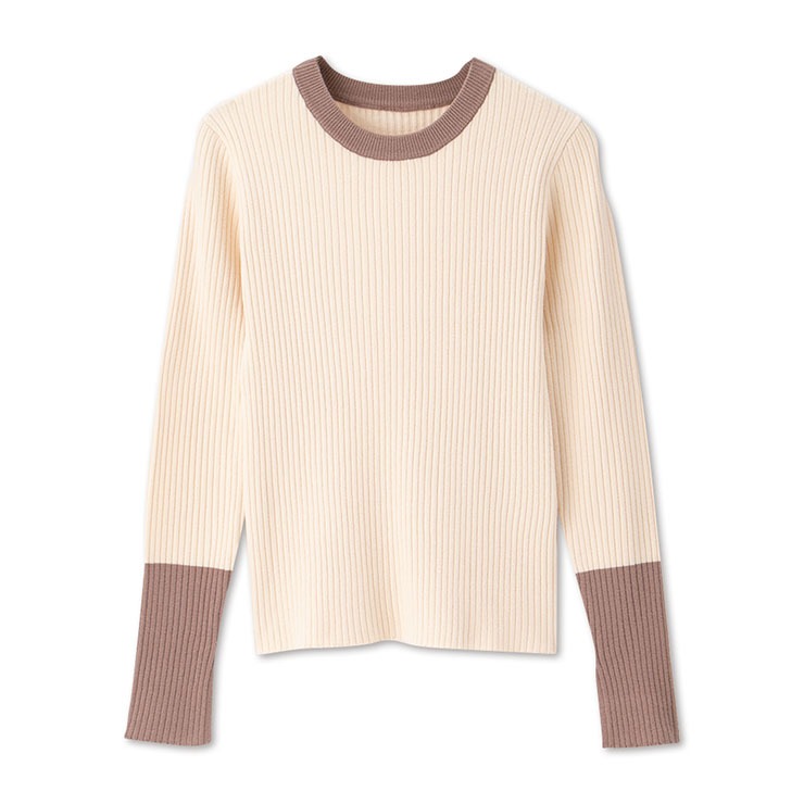 衿と袖の配色がポイントのリブニットプルオーバー。