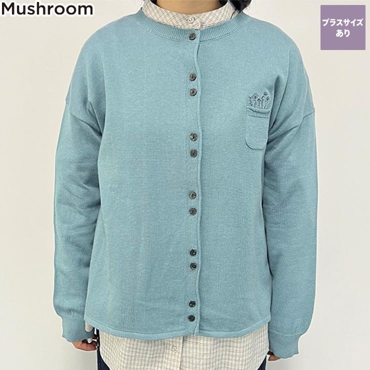 レディース 花刺しゅう多ボタンカーディガン(Mushroom)