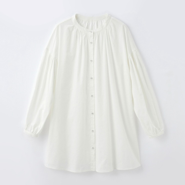 襟部分のギャザーがアクセントになったブラウスです。