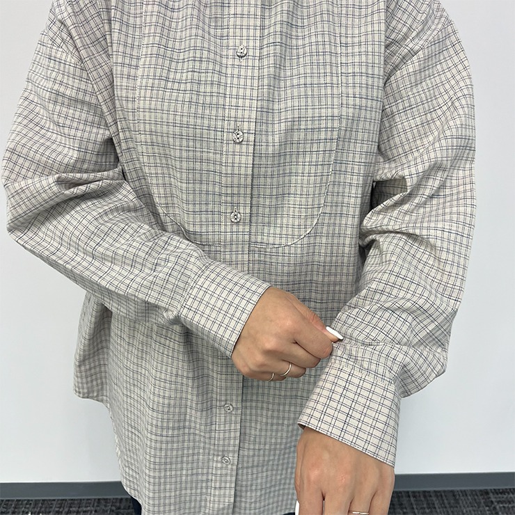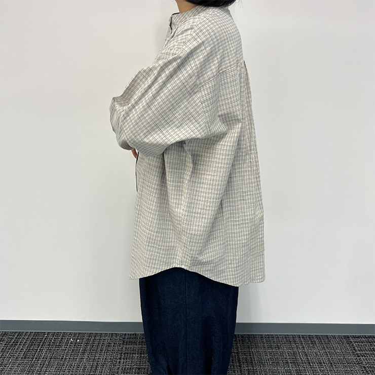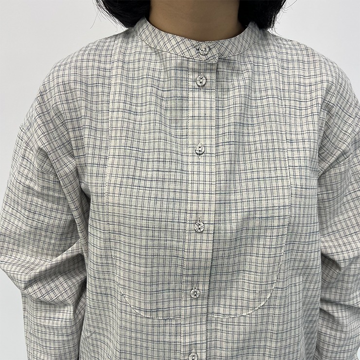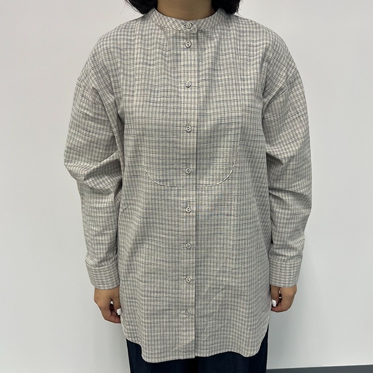 シンプルなバンドカラーのチュニック。