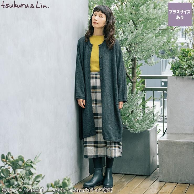 コットン100%の糸で作った綿ツィードを使用し、優しいチェック柄のスカートを作りました。