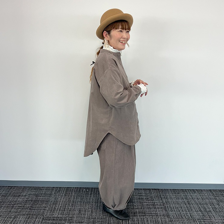同素材のチュニックと合わせてセットアップとしてもお楽しみいただけます