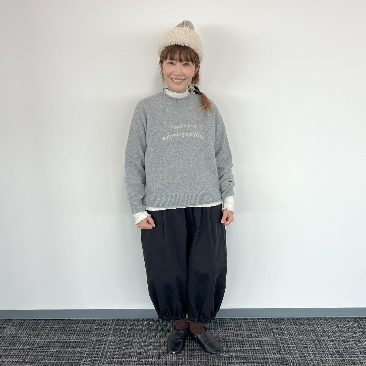 ゆったりしたサイズ感のパンツ。