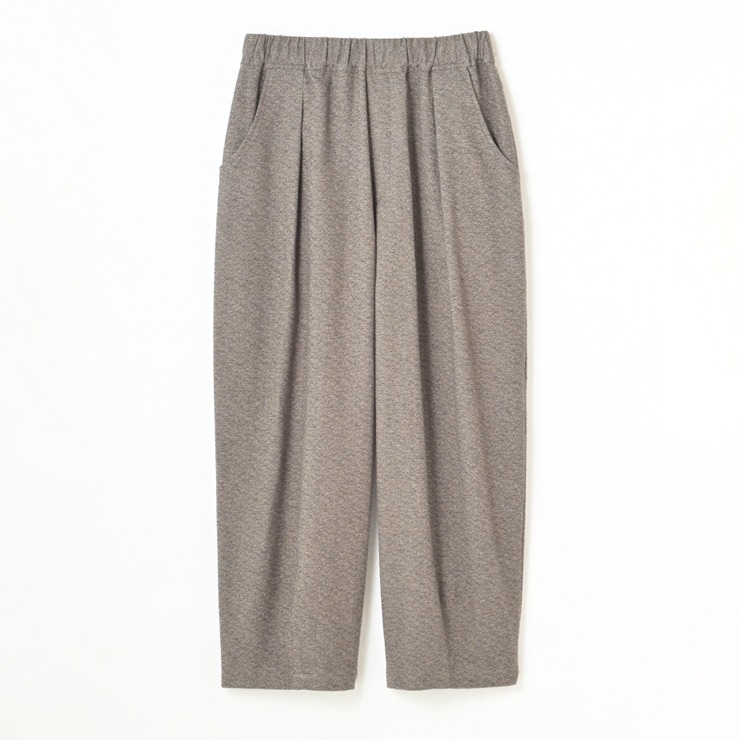 足のラインを拾いにくい、ゆったりとしたシルエットのカーブパンツです。