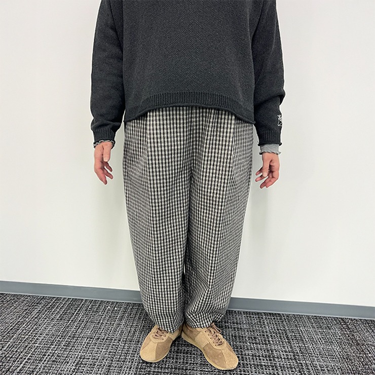 ナチュラルな印象のコクーンパンツ。
