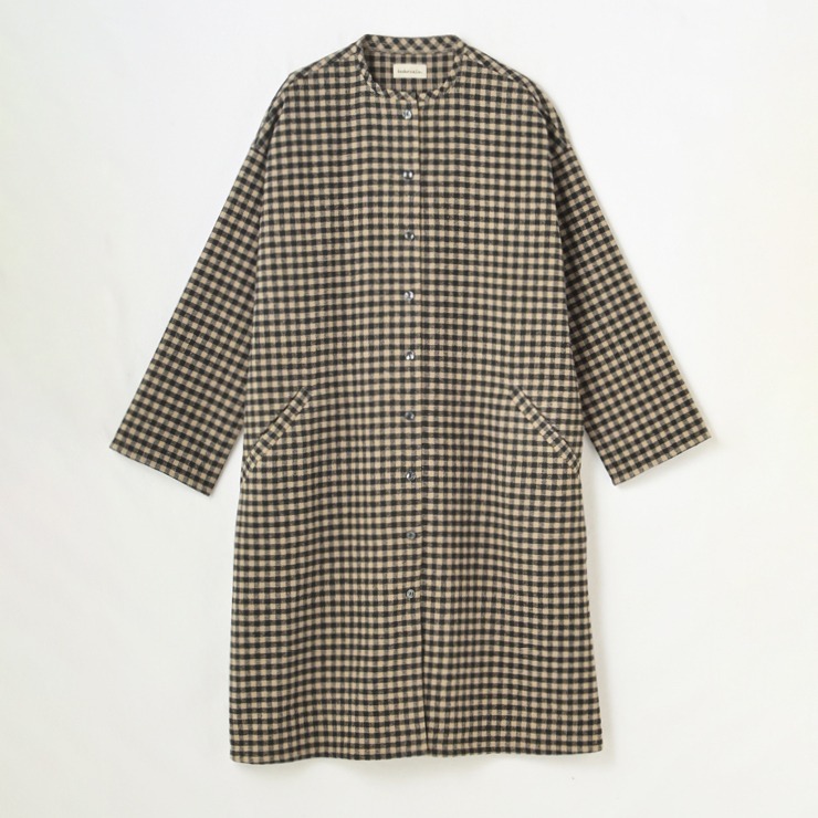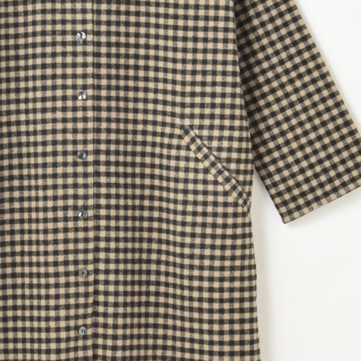 あたたかみのあるウール入りの糸をゆるく織り上げて起毛させたナチュラルなワンピース。