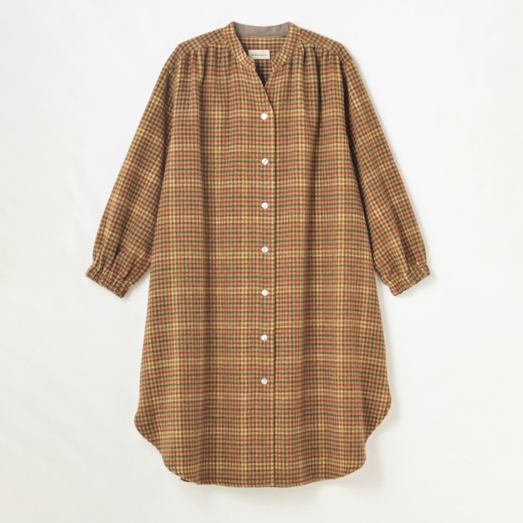 あたたかみのあるウール入りの糸をゆるく織り上げて起毛させたナチュラルなワンピース。