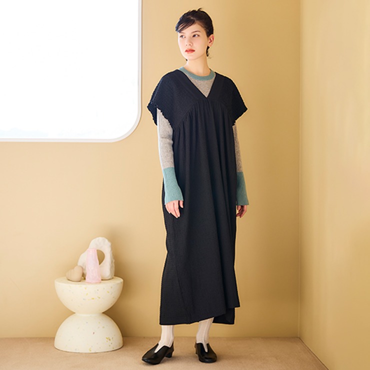 すとんとしたシルエットのワンピース。