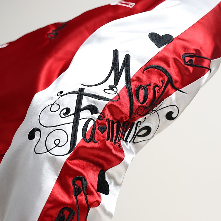 バックスタイルたけでなく、袖や胸元にもふんだんに刺しゅうを施した、こだわりのアイテムです。