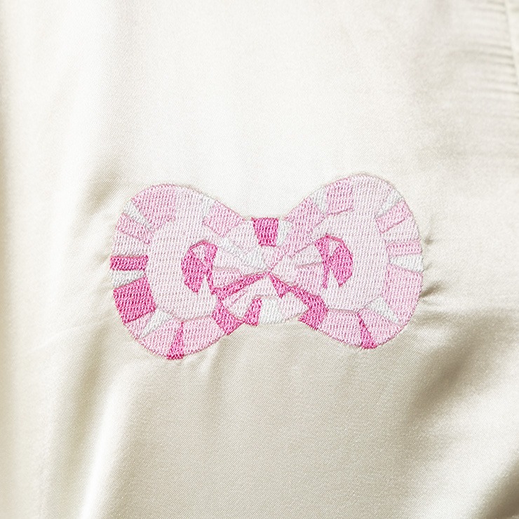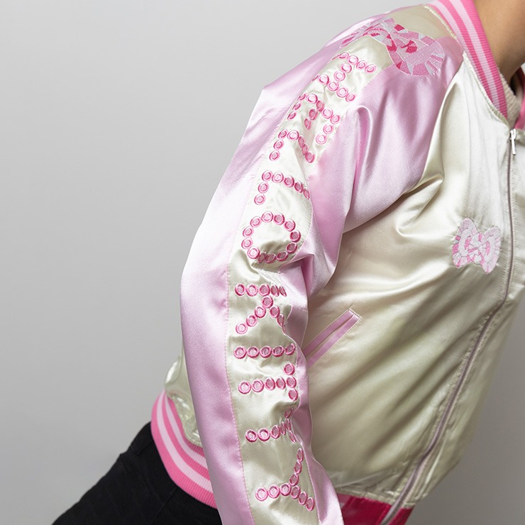 バックスタイルたけでなく、袖や胸元にもふんだんに刺しゅうを施した、こだわりのアイテムです。