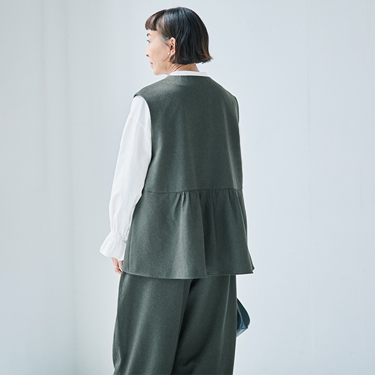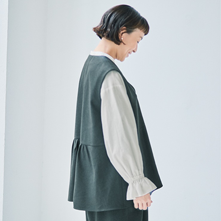 ウエストで切り変えて、ゆったりとしたシルエットのペプラムジレ。