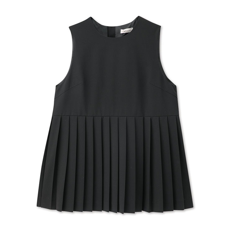 トレンドのペプラムシルエットにプリーツをほどこした、デザイン性のある1枚。