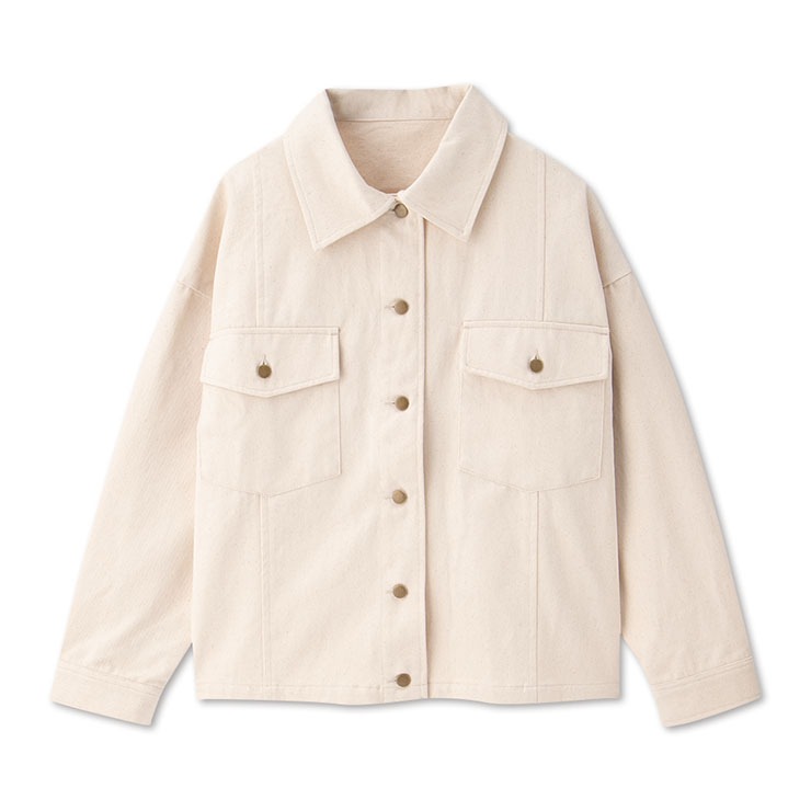 ポケットの配置や襟のサイズにまでこだわり、全体のシルエットが大きく見えないようデザインされたブルゾン。ホワイトやブラックのボトムスと好相性のブラック、そして春らしい印象を与えるアイボリーの2色展開です。カス残しの素材感がほどよい抜け感を演出し、パンツにもスカートにも合わせやすい一着。この春、幅広く活躍してくれること間違いなしのアイテムです。